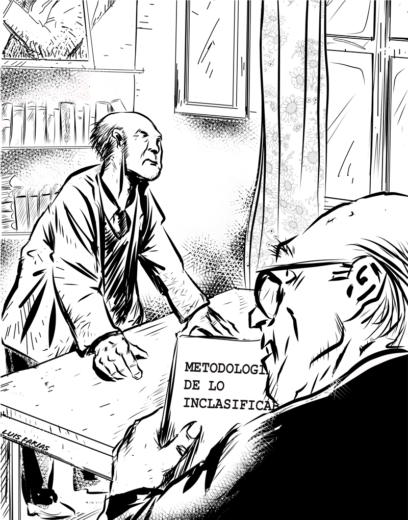 Don Quintillo y el Dr. Isea estuvieron toda la semana pensando en el material que mandó el Muchacho y haciendo comparancias de distinta índole. Fueron los primeros en llegar a la biblioteca. El Pity apareció acompañado por Calamuchita, este último convocado por el Dr. Isea.
