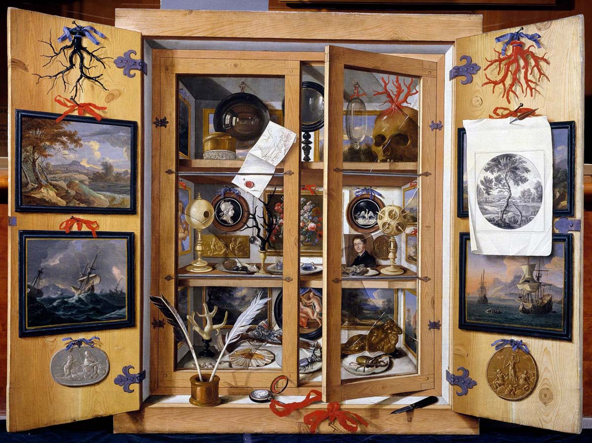 De las diversas acepciones que, según el Diccionario de la Real Academia, tiene la palabra gabinete, transcribo una, que es la que aquí me interesa: (Del it. gabinetto, del lat. cavêa., jaula). 4. Local en que se exhibe una colección de objetos curiosos o destinados al estudio de una ciencia u arte. En los siglos XVI y XVII aparece la llamada pintura de gabinete, en alemán Wunderkammern, es decir cámara de maravillas, salas donde se coleccionaban objetos extraños, invenciones, antigüedades, curiosidades científicas y arte. Por alguna razón misteriosa desde siempre me atrajeron estas imágenes de gabinetes y de quienes los construían, poblaban de objetos y trabajaban en ellos. Los ejemplos son harto numerosos y, como muestra, elegí cuatro.