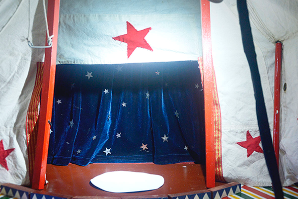 El nombre Gran circo del Arca se lo pedimos al señor Haroldo por vía de lo sagrado. Es muy bueno el Haroldo, él ahora está a la diestra de dios y cada tanto nos comunicamos y aparece, aparece cuando el andar se complica, en lo frágil, en lo desprotegido y nos da una mano.
