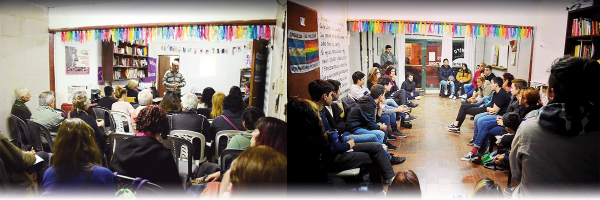 En respuesta a la consulta sobre qué actividades se emprenden desde el Centro Cultural, Paula nos cuenta que desde ese 20 de noviembre no dejamos de pensar, hacer e intervenir, la primera actividad, en diciembre de ese mismo año fue un Ciclo de Talleres de Formación Política a cargo de los compañeros Carlos Bonet, Cristian Settembrini y María Inés Carro. El ciclo consistió en varios encuentros que se continuaron durante el año siguiente, en los que participaron muchos jóvenes militantes de nuestra ciudad. Le siguieron charladeros de películas, con ciclo de cine-debate donde, por ejemplo, problematizamos sobre la disyuntiva prostitución: ¿trabajo sexual o esclavitud?, entre otros. Llevamos a cabo un Ciclo de Talleres de Género y Diversidad en los que intentamos desnaturalizar cuestiones como los estereotipos de género, los distintos tipos de violencias de género y el acoso, entre otros. En el 2018, hicimos una convocatoria para realizar la Primera Marcha del Orgullo en Pergamino. El éxito de la convocatoria demostró que había una necesidad muy grande de espacios como el nuestro que impulsaran esas movidas. La marcha fue multitudinaria y punta de lanza para las que siguieron, no solo en nuestra ciudad sino en la región. A partir de allí se formó el Comité Organizador de la Marcha del Orgullo del que somos parte. Entre el 2017 y el 2019 recibimos en nuestro espacio a diversas personalidades de la política y la cultura: el autor Juan Cruz Cabral presentó su libro “Itinerario de un militante peronista”; Juan Solá vino a hablarnos de su novela “La chaco” y compartió con nosotros la lectura de algunas de sus obras. Nos visitaron, en varias oportunidades, Victoria Montenegro y Mónica Macha, diputadas del Frente de Todos y referentes feministas, con quienes hicimos encuentros y mateadas. Iris Pezzarini y Daniel Ezcurra charlaron con los vecinos y vecinas de nuestra ciudad sobre la importancia del hacer un feminismo popular, territorial y sobre el Proyecto Nacional y Popular respectivamente.