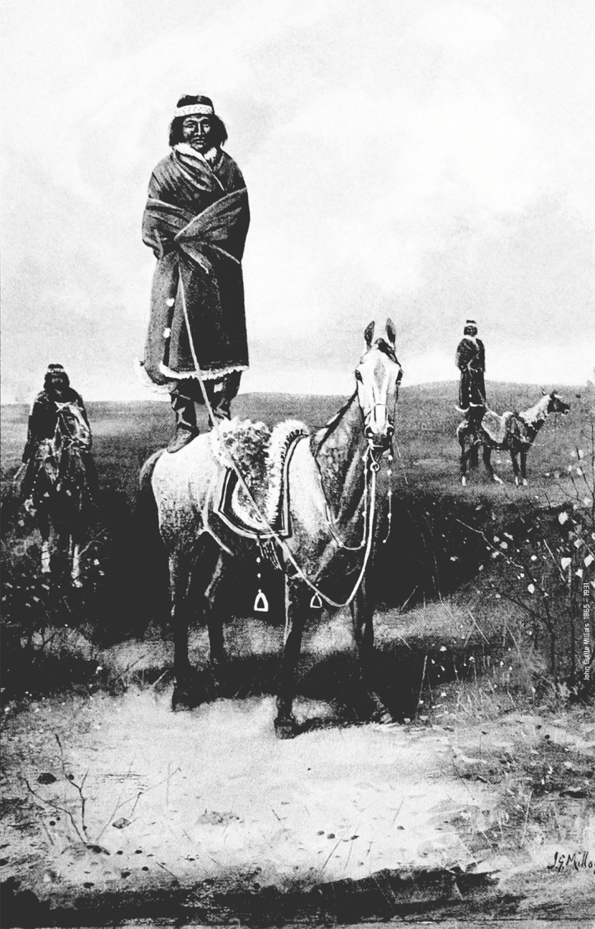El caballo caminó, sin freno y sin riendas, y el jinete con gestos de los brazos le indicaba el camino: «por aquí… por allá» en comunicación cuerpo a cuerpo, piel con piel.