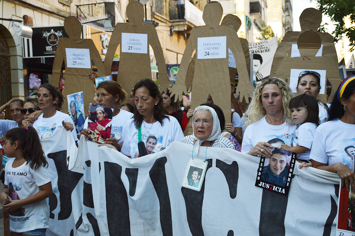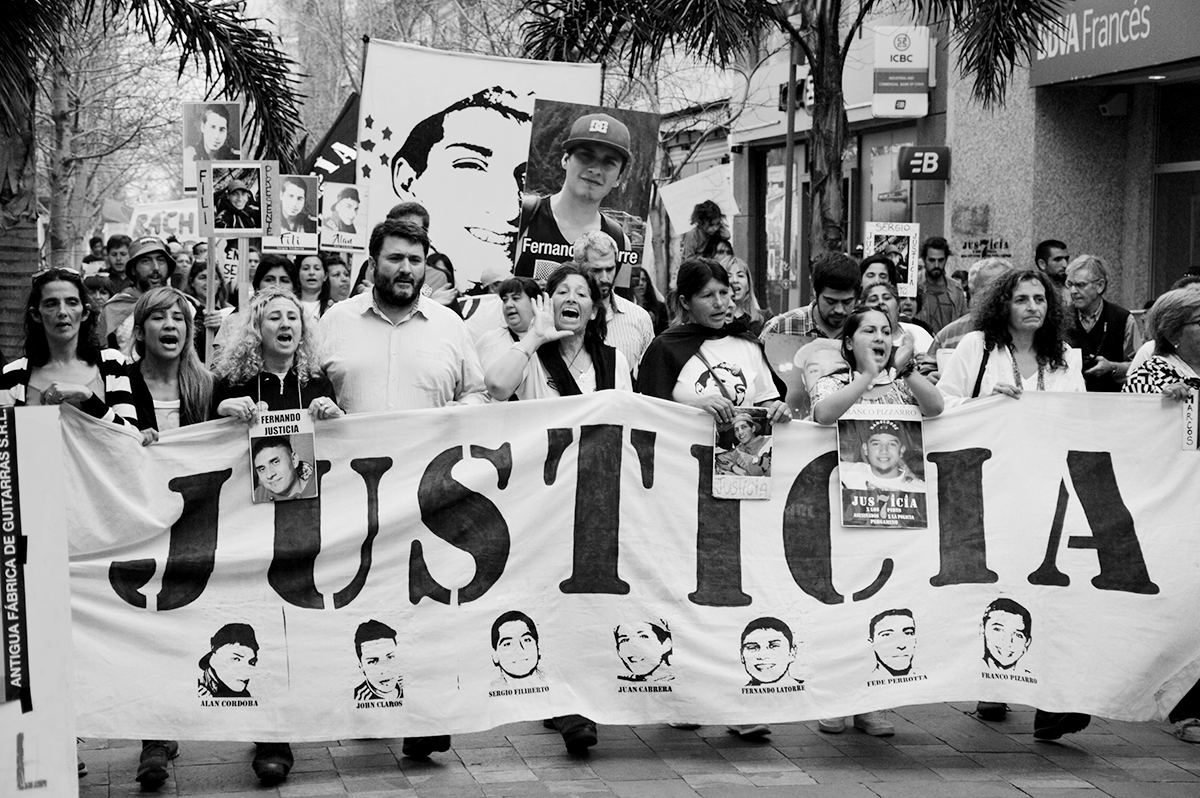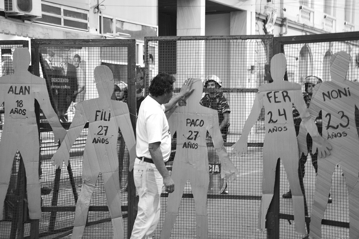 Me convocaron a la primera o segunda marcha de los familiares de las siete víctimas de la masacre y ahí fui, cámara en mano cada día 2 de cada mes. Fue difícil. Había hecho otros registros callejeros, manifestaciones, performance, (eran tiempos de tomar las calles), pero esto era diferente, me costaba abstraerme de esa imagen desgarradora en los rostros de las madres, de las novias, de los amigos, del dolor en crudo, real, incognoscible. Me escondía detrás del objetivo con cierto pudor. Cuando empezaba el trabajo de edición y selección de cientos de fotografías, que habíamos hecho con otros compañeros, me preguntaba, hasta donde el registro se inscribía en cierto voyerismo en la profundidad del dolor.