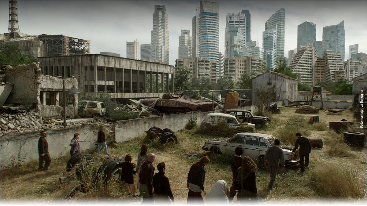 Hay una zona de exclusión que clausura a los humanos el ingreso a la ciudad abandonada. En torno a ese anillo se ha formado otro tejido urbano. Bandas de saqueadores ingresan a “la ciudad dormida”, y también turistas.