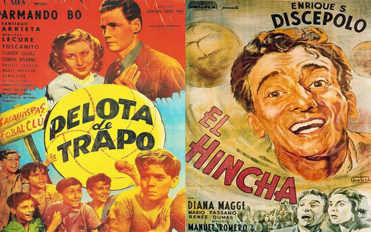 Vamos a destacar algunas películas de ficción que supieron retratar el trasfondo social que anida en el futbol. Todas fueron narradas al estilo del neorrealismo italiano. Aquí están y estas son: “Pelota de trapo” (1948) filmada en los potreros del conurbano bonaerense que enseguida se transformó en un éxito de boletería y en un clásico de nuestro cine. Le siguieron “Sacachispas” (1950), “El hincha” (1951) con la presencia dominante de Discépolo interpretando al “Ñato”, un hincha del tablón.