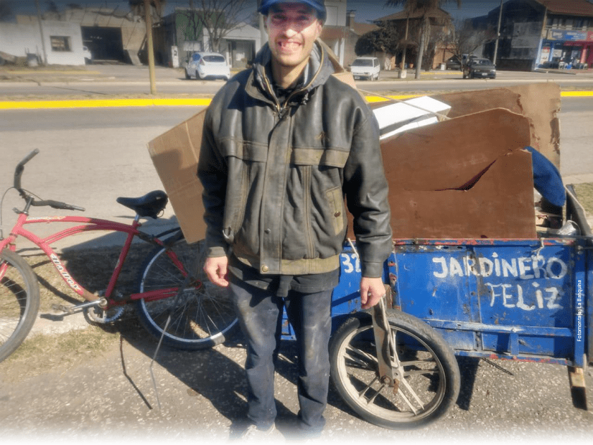 … el carrito avanza casi a los tumbos, se bambolea para un lado y para el otro como si rebotara sobre el pavimento, pero avanza. El Soga pedalea siguiendo el compás de una cumbia que sólo él escucha pues le brota del walkman, la cabeza gacha pero los ojos fijos al frente, o sea que mira de refilón hacia arriba. Pedalea parejito y uno tiene la sensación de que a ese ritmo podría tranquilamente dar la vuelta al mundo. El Soga habla poco, no de parco, sino porque no se le entiende un carajo, salvo un puñado de palabras indispensables, “hola”, “chau”, algún que otro nombre propio poco complicado, “gracias”, y “la puta que te parió”, el resto es como si hablara en un idioma extraño. Seguro los médicos tengan para esto alguno de esos nombres raros con que suelen llamar a estas cuestiones, pero ahora poco importa, poco importa después de la ausencia original. Yo no sé cómo son estas cosas, ni cómo es que suceden, pero en algún momento hubo un minuto, un instante, un suspiro de tiempo, en el que ahí faltó alguien, sino no se entiende que no sepa hablar, en ese relámpago el Soga estuvo sólo.