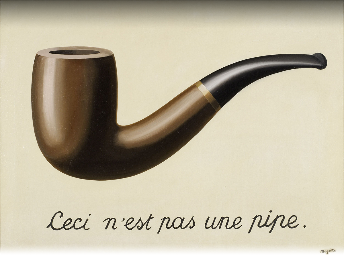 La escritura “Ceci n´est pas une pipe” tiene sentido no por el verbo ser, sino por su negación, ya que, en la faceta de ocultamiento (o mejor dicho, de revelación) pone en evidencia la falta. El afán de plenitud, el sueño dorado de la certeza, es hecho añicos por la escritura que niega la evidencia y, en esa negación, se crea, se construye como objeto autónomo.