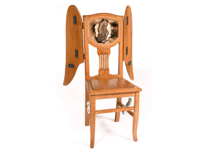 Silla es, según la Real Academia, un asiento con respaldo, por lo general con cuatro patas, y en el que sólo cabe una persona. Sillas hay muchas y variadas. Así, la curul, donde se sentaban los ediles romanos o la que ocupa la persona que ejerce una elevada magistratura o dignidad; la de tijera, que tiene el asiento por lo general de tela y las patas cruzadas en aspa de madera que puede plegarse; la gestatoria, la portátil que usa el Papa en ciertos actos de gran ceremonia; la poltrona, más baja de brazos que la común y de más amplitud y comodidad. Hay sillas de montar, aparejos para montar a caballo, formado por un armazón de madera, cubierta de cuero y rellena de crin. Y, también, la silla de la reina, asiento que forman entre dos con las cuatro manos, tomando cada uno su muñeca y la del otro. 1 Si bien no se conservan ejemplares, se sabe que hay mobiliarios (camas, sillas y mesas) por lo menos desde el neolítico, diez mil años atrás. Pero la verdadera historia de los muebles (y por ende de las sillas) empieza con las Dinastías IV y V, en Egipto, hace más de siete mil. En el siglo XX, la Bauhaus aporta significativas novedades: Marcel Breuer diseña su famosa silla en voladizo de tubo con asiento y respaldo de mimbre enmarcados en madera; Mies Van der Rohe, otra con dos arcos curvados en forma de X –ambos diseñadores pensaron en una estética agradable capaz de ser fabricada en serie-; el Art Déco incorpora maderas raras con acabados brillantes en audaces formas geométricas – al revés de lo que sucedió con la Bauhaus, la fabricación en serie trajo consigo versiones de baja calidad y el estilo se devaluó-. Aquellas y estas sillas tienen una función, más allá de su estética más o menos lograda, el descanso de una sola persona. Se fabricaron y se fabrican con ese propósito. Algunos artistas del siglo pasado les dieron a las sillas (y demás muebles) otros destinos más allá de su función específica. Así, entre otros casos, el cubano Manuel Mendive es autor de una Mujer (Silla) y de un Hombre (Silla), de madera pintada a la que incorporó collages y caracoles.