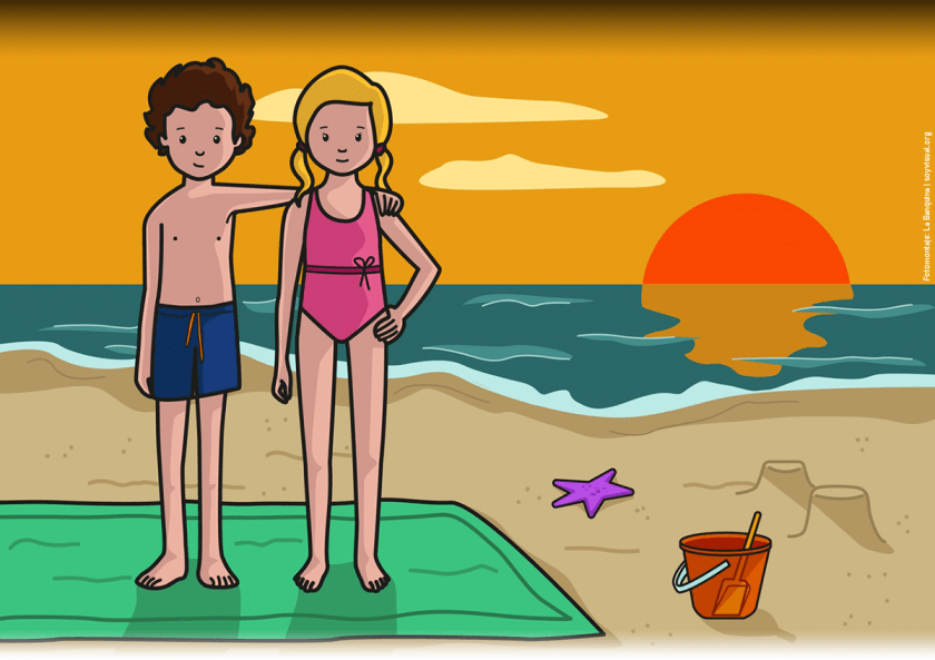 El calor es agobiante e impensado en una playa del sur. Parece que son hermanos, niña y niño con su papá. Alrededor de los 10 años ambos. Esa edad en que todo comienza a cambiar, los juegos, el cuerpo y los deseos. El hombre de mediana edad, más bien joven, deja traslucir un cansancio profundo, un agotamiento de años y paradójicamente una paz envidiable. Los probables hermanos están en movimiento continuo, lo que incluye pelota, corridas hasta el agua, forcejeos violentos y amorosos, revolcones en la arena caliente. Todo esto en un inexplicable silencio, solo algunos gestos casi imperceptibles, algunos ademanes que ni llegan a ser señas.