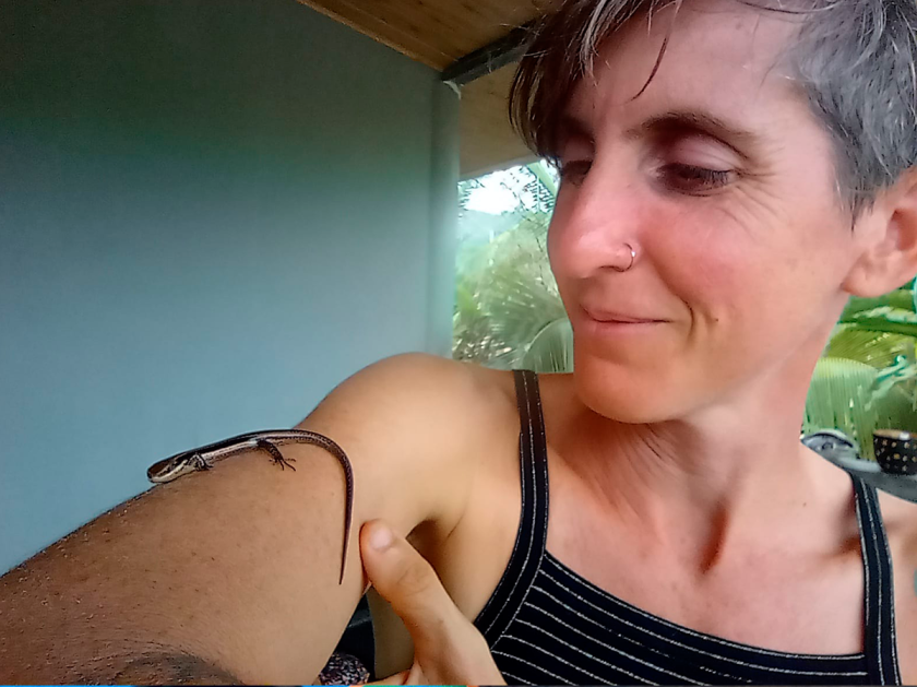 Sofi ahora se encariñó con un animal ¡Tan raro! Es una lagartija.