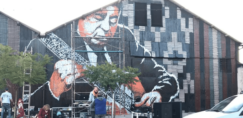 Casualmente (o no) yo venía bocetando algunas ideas para hacer en la calle con su imagen, por lo que la propuesta cerró enseguida, con ambas partes dispuestas a hacer cosas interesantes y con la premisa de hacerlo de manera colectiva, involucrando a otros muralistas consagrados de la ciudad (Fede Calabia, Dami San Martin, Lulu Minigo, Marco Bentancur y Martin Lacuadra).