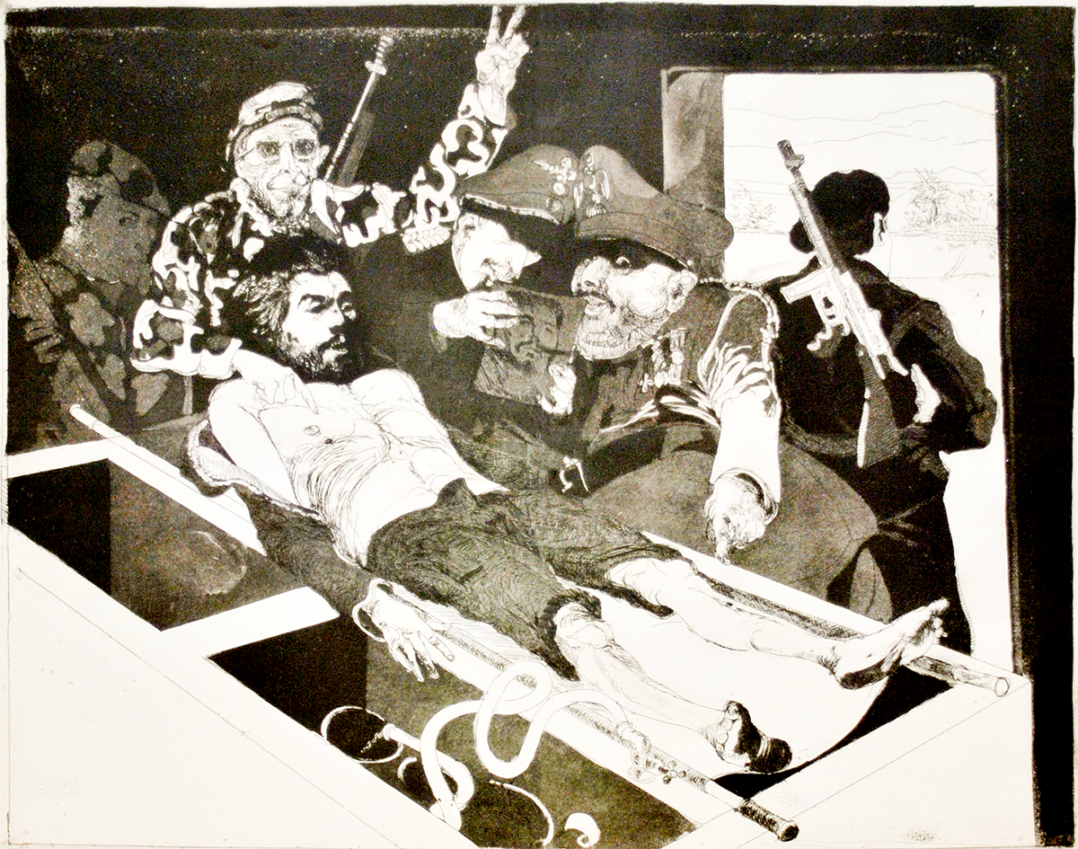 La fría piedra del lavadero, en el hospital Señor de Malta de Vallegrande, fue el lugar elegido para depositar el cadáver. Desde aquel lunes 9 de octubre del 67, sus ojos no solo no se cerraron, sino que siguen mirando con la claridad que sostuvo la coherencia en su modo de ser y hacer. Como una amante apasionada, el asma le quedó atrapada bajo el pantalón roído entre las heridas del muslo y el tobillo. La boina permaneció a merced del implacable tiempo, agujereada por una ráfaga de ametralladora, en la escuela de La Higuera. Cayó abandonada a su suerte, entre las sogas que le maniataban las manos, esas mismas que cortaron como trofeo de guerra. Muy cerquita, casi tocando la ochava de la pared, los restos de la vela que alumbró la última noche y el remanente del escupitajo con el que encaró al gusano de la CIA.