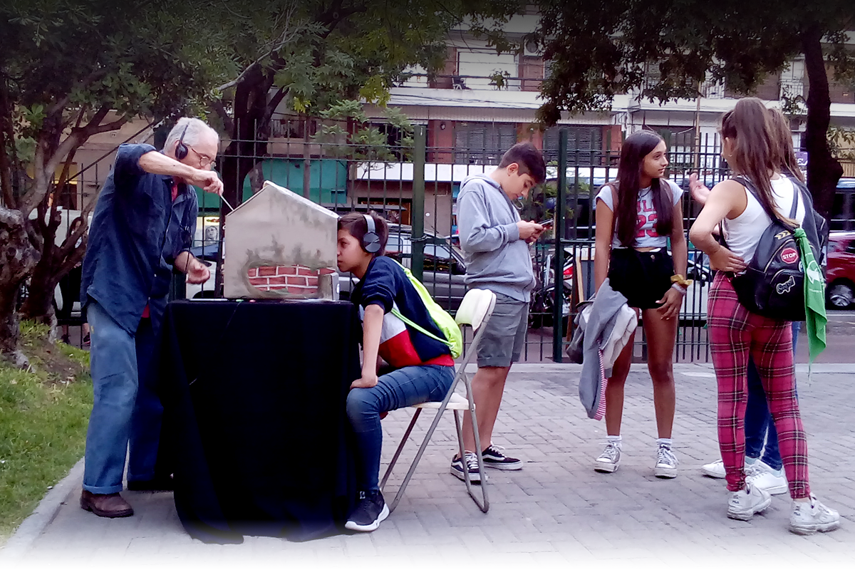 Damos un taller junto a Patricia Bontas, mi compañera de la vida desde hace 27 años, en la villa 21-24 de Barracas, un taller para niños de plástica, títeres y teatro que ya cumplió 14 años.