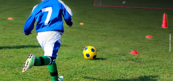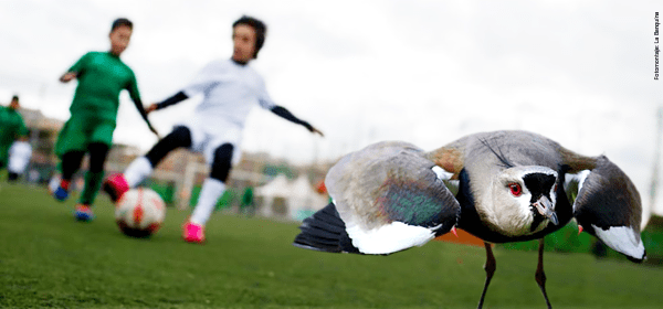 Escena 7. Un niño pierde la pelota al borde del área contraria, y un poco enojado, y otro poco por espíritu de equipo, vuelve marcando